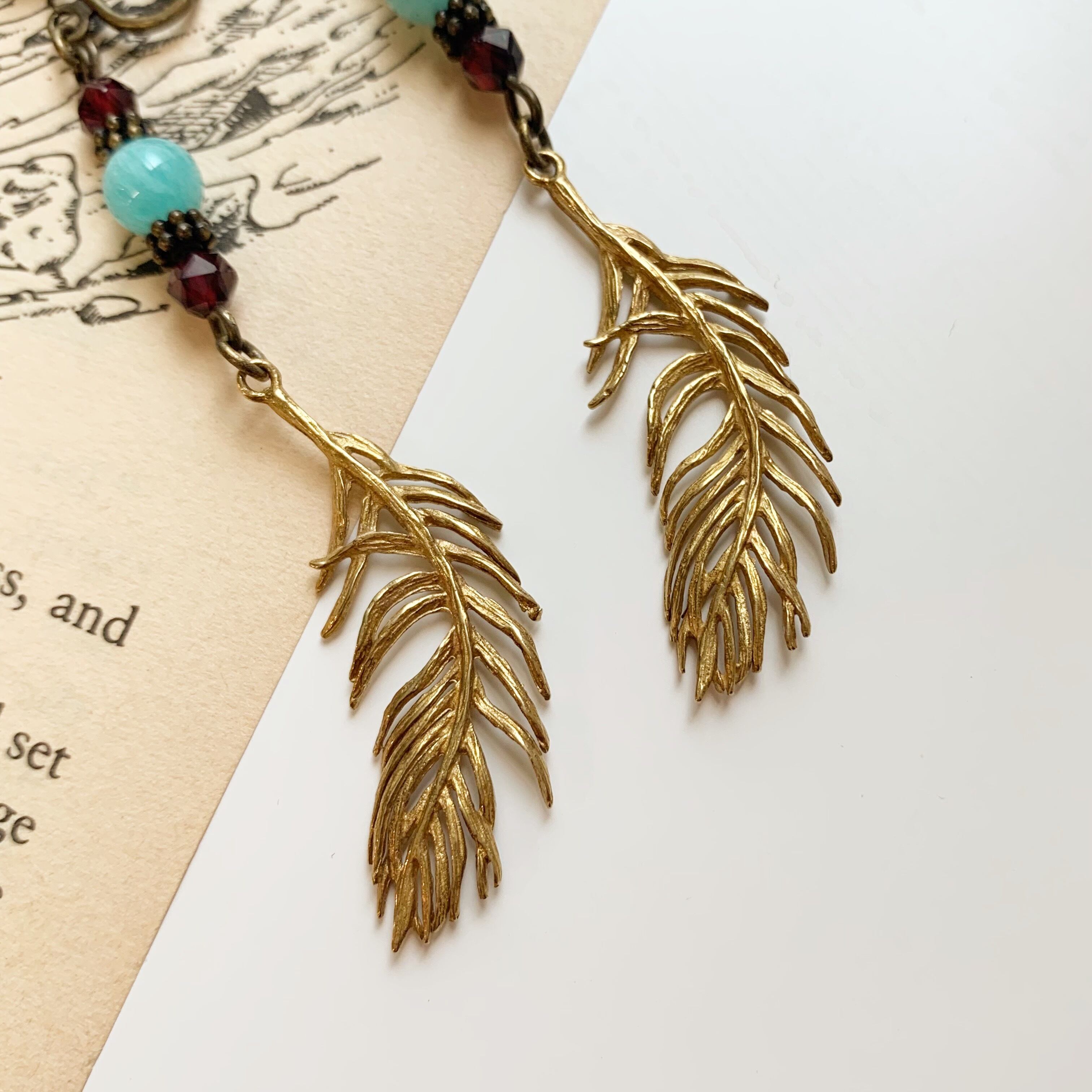 アマゾナイト&ガーネット・羽根・イヤリング